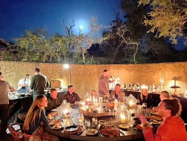 One of the many highlights while staying at these stunning reserves is the opportunity to experience the magic of a bush dinner. Here you will enjoy sitting under the stars next to a blazing fire while being served only the finest wine and food on offer. Dine with your guides, wildlife vets and conservationists and gain insight into their everyday lives and the cultural, political and community challenges they face in trying to preserve some of Africa's oldest and most iconic wildlife species.